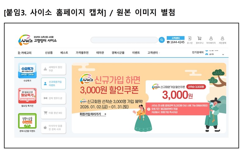 박찬국 경상북도 농축산유통국장은 “오랜 기간 쌓아온 신뢰와 입소문이 오늘의 사이소를 만들었다”며 “앞으로도 사이소를 신선하고 우수한 농특산물을 합리적인 가격에 전하는 믿을 수 있는 온라인 직거래의 기준으로 만들어가겠다”고 전했다.