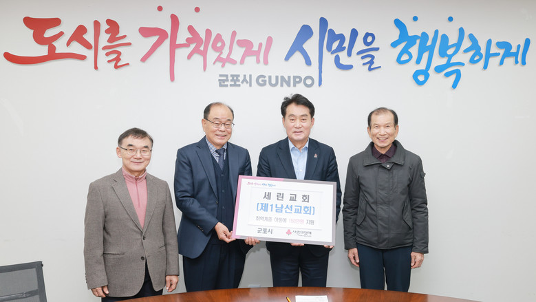 하은호 군포시장은 매년 겨울나기에 어려움이 있는 이웃을 위하여 사랑과 나눔을 실천하는 제1남선교회에 진심으로 감사드리며, 취약계층 아동에게 잘 전달하겠다”고 말했다