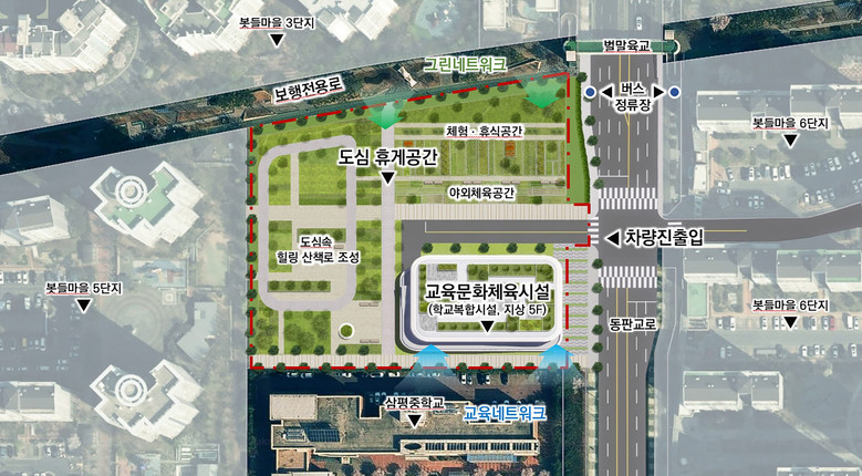 수립된 기본 구상안에는 연면적 약 15,000㎡ 규모의 교육·문화·체육시설을 중심으로 도서관, 수영장, 문화센터, 주차장을 조성하고, 편익시설과 산책로가 어우러진 도심 휴게공간을 함께 마련하는 내용이 담겼다.