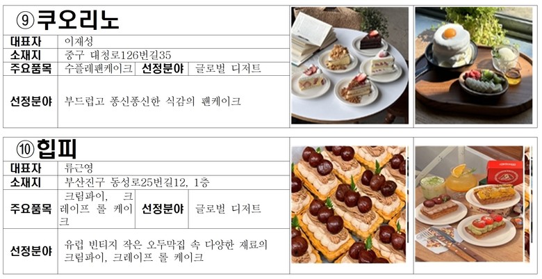 ▲부산의 푸른 바다를 담은 푸딩 ▲지역의 식재료와 이야기를 입힌 소반 ▲청와대에 납품한 만주 ▲부산의 대표 이미지로 만든 떡 등 이색적이면서도 글로컬한 그리고 맛까지 사로잡은 다양한 디저트들이 최종 선정됐다.