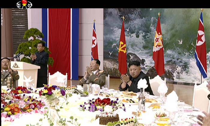 북한 김정은 노동당 위원장이 평양 목란관연회장에서 핵과학자와 기술자들을 위한 6차 핵실험 성공 자축 연회에 참석했다고 조선중앙TV가 10일 보도했다. 2017.09.10.(사진=조선중앙TV 캡처)