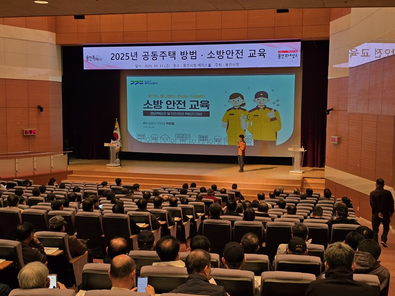[용인시 세계타임즈=송민수 기자] 용인특례시(시장 이상일)는 10월 31일 시청 에이스홀에서 지역 내 의무관리 대상 공동주택 471곳의 경비책임자와 시설물 안전관리책임자를 대상으로 방범·소방 안전교육을 실시했다고 4일 밝혔다.