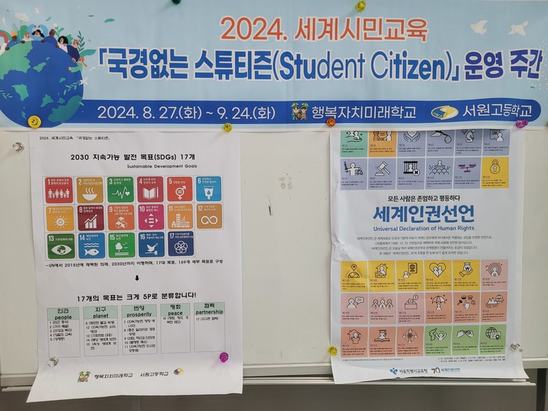 [충북 세계타임즈=이현진 기자] 서원고등학교(교장 신우성)는 지난 8월 27일(화)부터 9월 24일(화)까지 총 5주간 1, 2학년을 대상으로 ‘2024. 세계시민교육 운영 주간’을 추진 중이다.