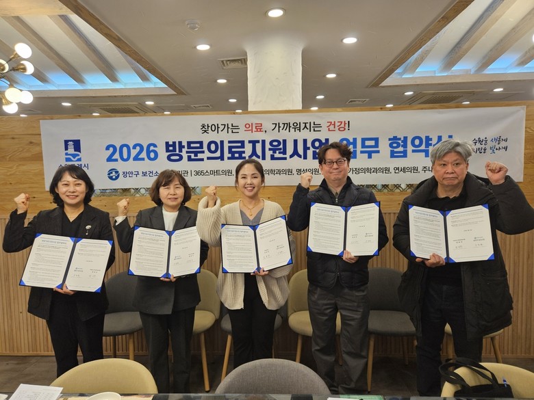 [수원시 세계타임즈=송민수 기자] 수원시 장안구보건소는 18일 지역 의료기관 6곳과 ‘방문의료지원사업 업무협약’을 체결하고, 거동이 불편한 의료 취약계층을 위한 재택의료 지원체계를 강화하기로 했다.