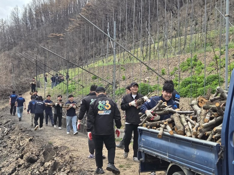 [경북 세계타임즈=한윤석 기자] 경북지구청년회의소 회원 50명은 최근 발생한 산불로 피해를 본 영덕군 지품면 과수농가를 방문해 산불에 그을려 못쓰게 된 벌목된 나무약 300그루를 정리하는 등 피해복구 지원 봉사활동을 펼쳤다.