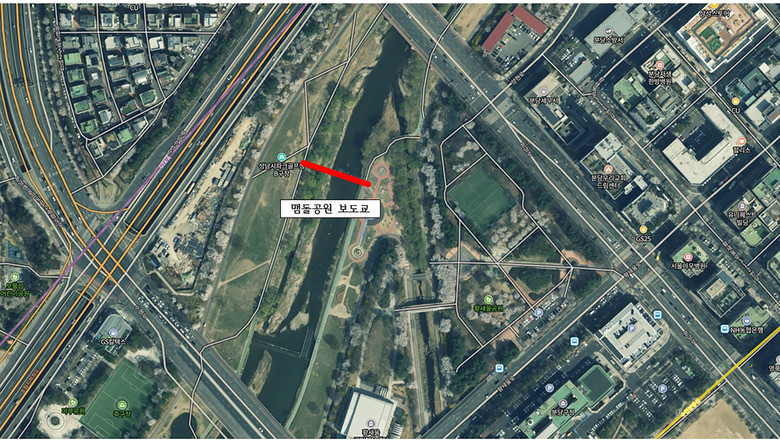 | ▲ 성남시 분당구 수내동 44번지 탄천 맴돌공원 보도교 위치도 |