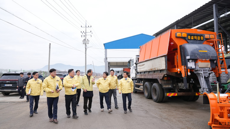 김광용 본부장은 안성시 제설 전진기지를 찾아 제설제 비축 현황과 제설 장비 가동 상태 등 겨울철 대설 대응 준비 상황을 직접 확인하고 강설 시 신속하고 체계적인 현장 대응이 이뤄질 수 있도록 철저한 대비를 당부했다.