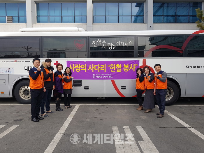 [대전=세계타임즈 이장성 기자] 6천명 봉사단체인 사랑의 사다리 밴드(리더 이정제)는 19일 오전 9시~오후5시에 대한적십자사 대전세종충남혈액원(원장 김용상)에서 혈액부족으로 고통을 받고 있는 환자들에게 희망을 전하고 이웃사랑과 생명 나눔을 실천하기위한 헌혈봉사를 하였다.