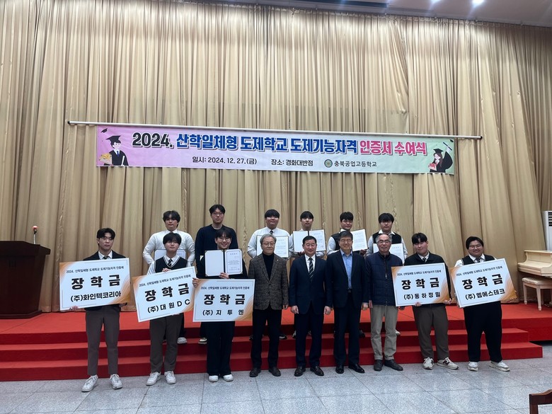 [충북 세계타임즈=이현진 기자] 충북공업고등학교(교장 김종식) 도제학교가 27일(금), 도제기능자격 인증서 수여식을 개최하였다.