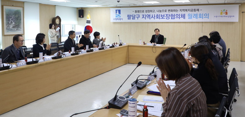 권남호 팔달구 지역사회보장협의체 민간위원장은 “이번 정례회의를 통해 지역사회에서 추진되는 다양한 복지 활동을 공유하고, 고립 가구 지원을 위한 새로운 사업 방향을 함께 모색하는 뜻깊은 자리였다”며 “앞으로도 민·관 협력을 통해 지역사회 복지 안전망을 더욱 강화해 나가겠다”고 말했다.