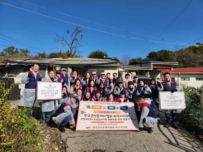 최기명 한국공인중개사협회 파주시지회장은 “공인중개사는 지역사회의 일원으로서 이웃과 온정을 나누는 것이 또 하나의 사회적 책임이라 생각한다”라며 “회원들의 마음이 담긴 이번 봉사활동이 이웃들에게 작은 힘이 되길 바라며, 앞으로도 꾸준히 나눔과 기부 활동을 펼치겠다”라고 말했다.