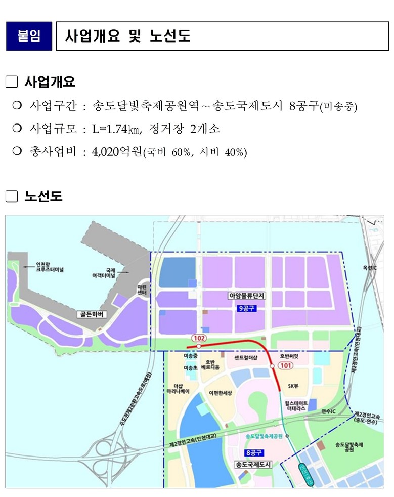 인천시는 지난 1월 23일 「인천1호선 송도8공구 연장사업 예비타당성조사 대응 연구용역」을 입찰 공고했다고 밝혔다. 이는 기획재정부 예비타당성조사라는 높은 관문을 통과하기 위해 선제적이고 체계적인 대응 전략을 마련하고자 한 것으로, 사업 추진에 대한 인천시의 강한 의지를 보여주는 조치다.