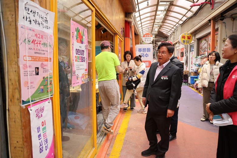 박강수 마포구청장은 아현시장 곳곳을 둘러보며 상인들과 인사를 나누고, 전통시장의 활력을 체감하는 뜻깊은 시간을 가졌다.