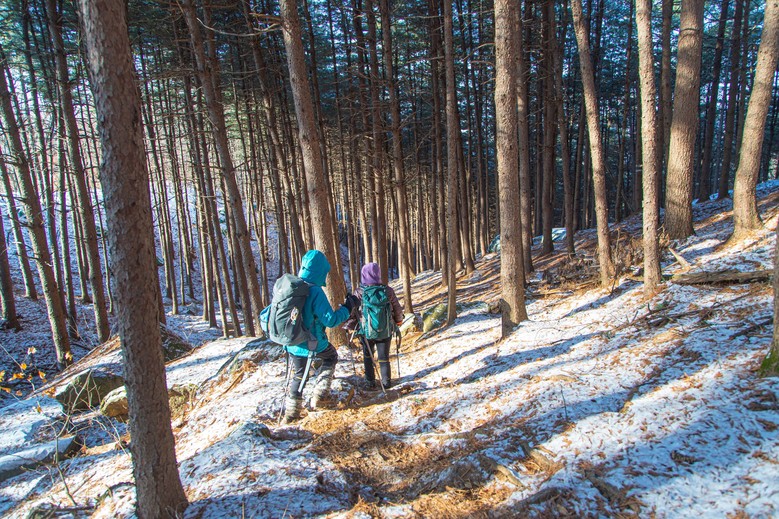 검단산은 해발 657m로 아주 높은 산은 아니지만 눈이 내린 날에는 길이 미끄럽다. 아이젠을 챙기고 천천히 오른다면 겨울에만 만날 수 있는 특별한 한강의 풍경을 선물처럼 마주할 수 있다.