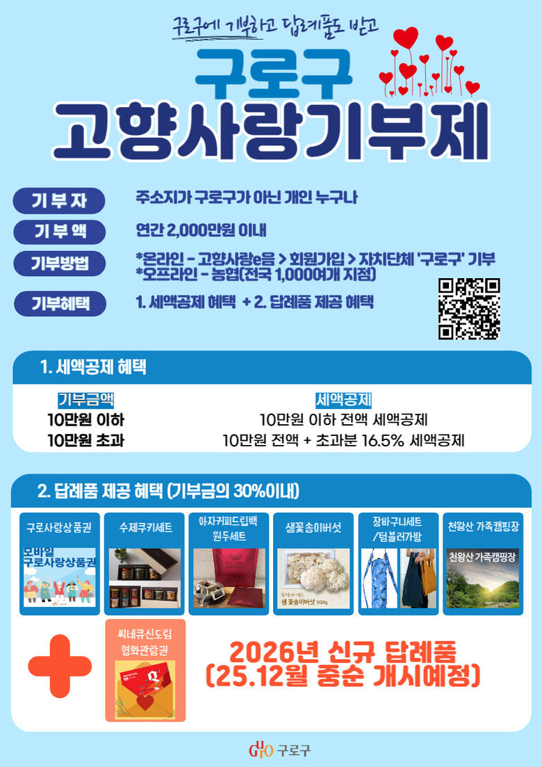 자세한 사항은 구로구청 누리집이나 고향사랑e음 누리집에서 확인 가능하다.