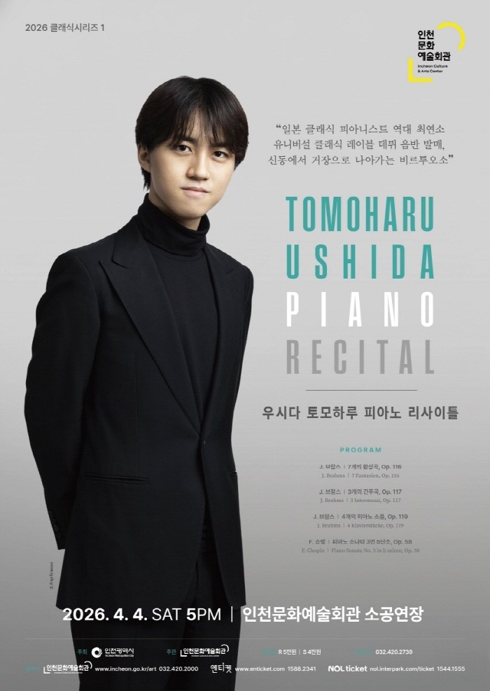 인천문화예술회관 관계자는 “영상으로 먼저 알려진 젊은 거장 우시다 토모하루의 연주를 실제 무대에서 만날 수 있는 특별한 기회”라며 “2026 클래식시리즈의 시작을 알리는 무대로서 관객들에게 깊은 음악적 울림을 전할 것으로 기대한다”고 말했다.