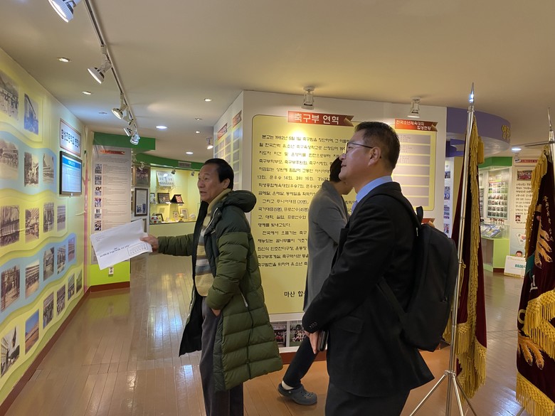 이날 박남용 의원은 합성초 내에 마련되어있는 합성축구역사관을 둘러보는 시간도 가졌다. 합성축구역사관은 합성초의 오랜 축구 전통과 역사를 기록한 공간으로 학교와 지역사회의 축구에 대한 열정과 유산을 보여주고 있다. 그러나 공간 재구조화 사업으로 인해 역사관마저 더 이상 유지하기 어려운 상황이다.