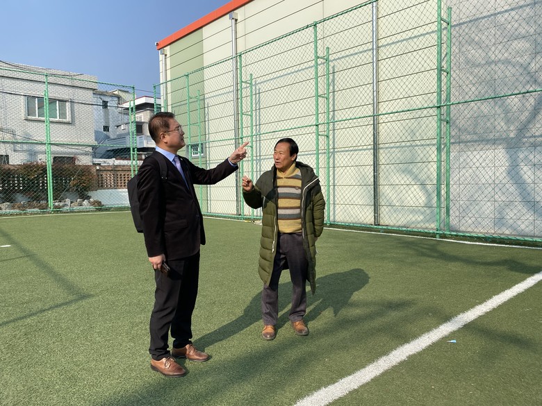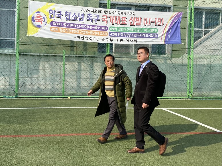이날 방문은 사업 추진 과정에서 발생한 운동장 축소 문제와 지역형 스포츠클럽의 훈련 공간 축소 우려를 해결하기 위해 추진되었으며, 강상기 마산합성FC 회장 등 관계자들이 참석했다.