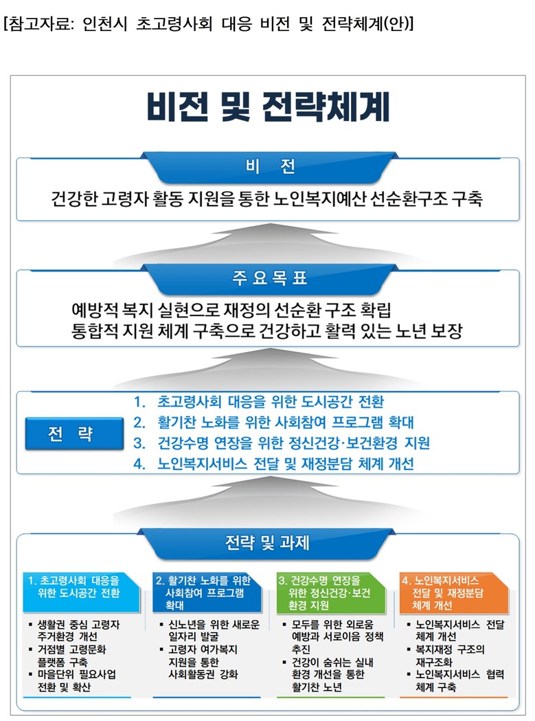 이 연구는 인천시가 2027년 전후 고령인구 비율이 20%를 초과하는 초고령사회에 진입할 것으로 전망되는 가운데, 고령인구 증가와 함께 고령 1인 가구 및 부부 가구 확대, 노년부양비 상승 등 인구구조 변화가 도시 전반에 미치는 영향을 종합적으로 분석하기 위해 추진됐다.