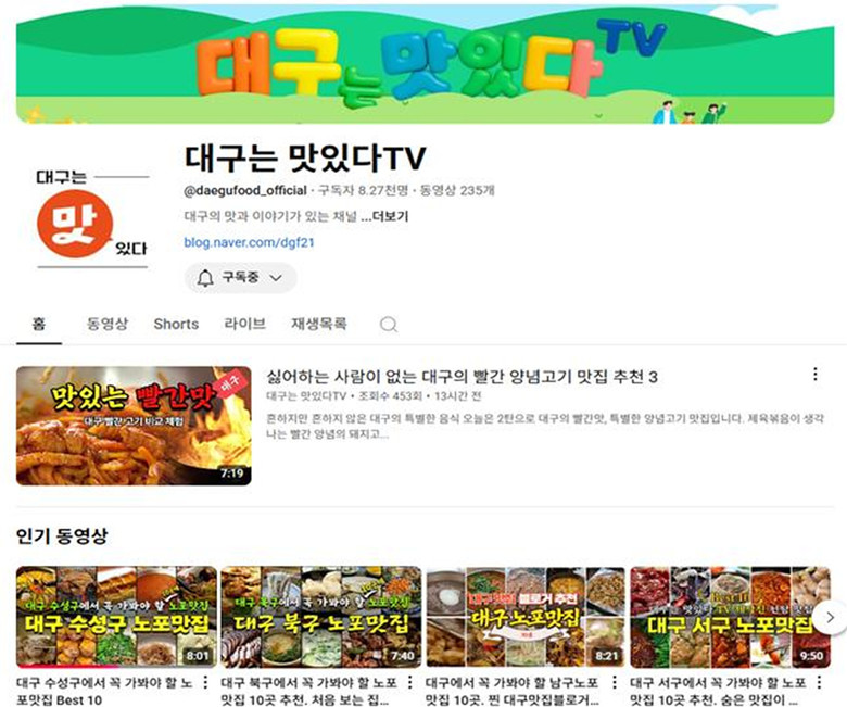 대구는 맛있다 TV 유튜브(www.youtube.com/@daegufood_official)