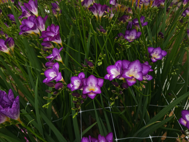딥보라문은 깊고 선명한 보라색 홑꽃의 프리지아로, 강한 향기와 생생한 화색이 특징이다.