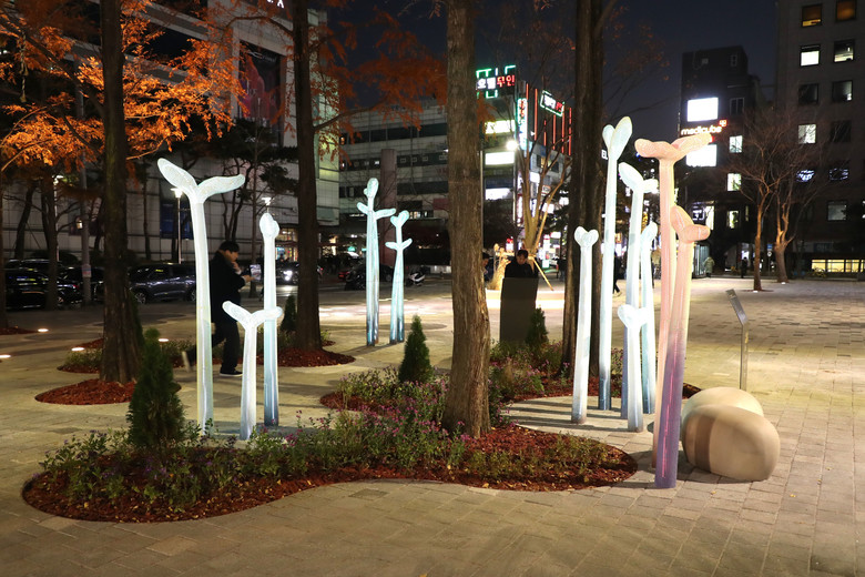 또한 서현역을 마주하는 메타세쿼이아 길에는 새싹 조형물과 바닥 센서 조명을 도입해, 주변 상업지역 대비 어두웠던 보행환경을 밝히고 야간 안전성을 크게 높였다.