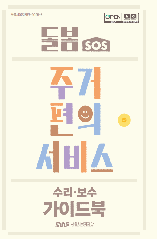 돌봄SOS 주거편의서비스(수리·보수) 가이드북은 공유복지플랫폼(wish.welfare.seoul.kr)에서 PDF 파일 형태로 내려 받을 수 있다.