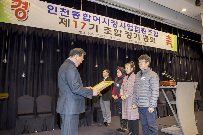 강후공 의장은 “정기총회 개최를 진심으로 축하하고, 인천종합어시장의 환경개선과 발전을 위해 늘 노력하시는 유기붕 이사장님을 비롯한 임직원 여러분께 감사를 드린다.”며, “갑진년 새해에도 어시장의 활성화와 상인들의 권익보호를 위해 조합원 간 확고한 단합으로 모든 활동에 적극적으로 참여하고 협력해 주시길 당부한다”고 말했다.