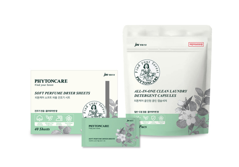 피톤케어는 PHYTO(식물)과 CARE(보호하다)의 합성어로, 식물이 주는 피톤치드 성분으로 일상을 보호하는 생활용품 브랜드다. 런드리 라인은 ‘올인원 클린 캡슐 세제’와 ‘소프트 퍼퓸 건조기시트’로 구성했다.