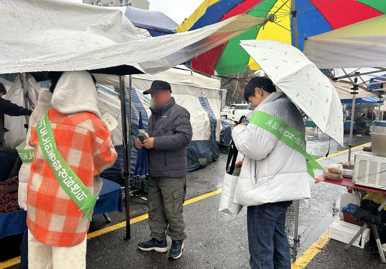 | ▲경기도노인종합상담센터가 일산민속오일장에서 현장 홍보를 진행 중이다.(사진=경기도사회서비스원) |