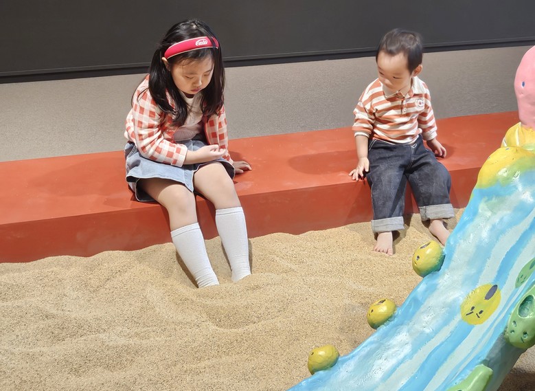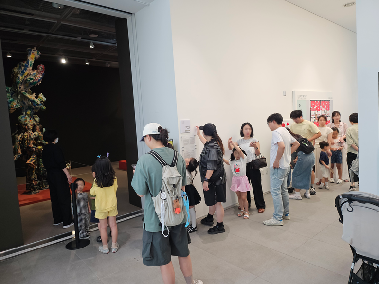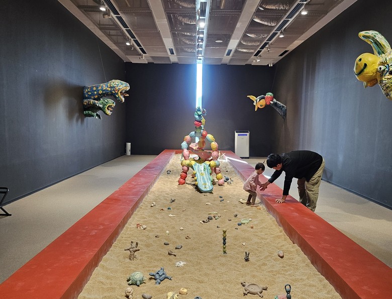 특히 전시장 한가운데 마련된 ‘모래 놀이터’가 어린이들에게 폭발적인 인기를 끌고 있다. 단순한 놀이를 넘어 어린이들이 스스로 ‘모양’을 만들고 탐색하는 감각적 창작의 장으로 자리 잡았다. 주말 오후에는 체험을 위한 대기 줄이 길게 늘어서기도 해, 전시에 대한 높은 관심을 실감케 하고 있다.