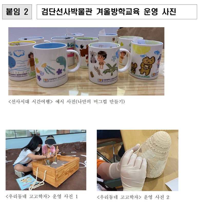 조규명 인천시 검단선사박물관장은 “이번 겨울방학 교육을 통해 많은 어린이 친구들이 선사시대와 고고학을 쉽고 재미있게 알아가는 뜻깊은 기회가 되길 바란다”라고 말했다.