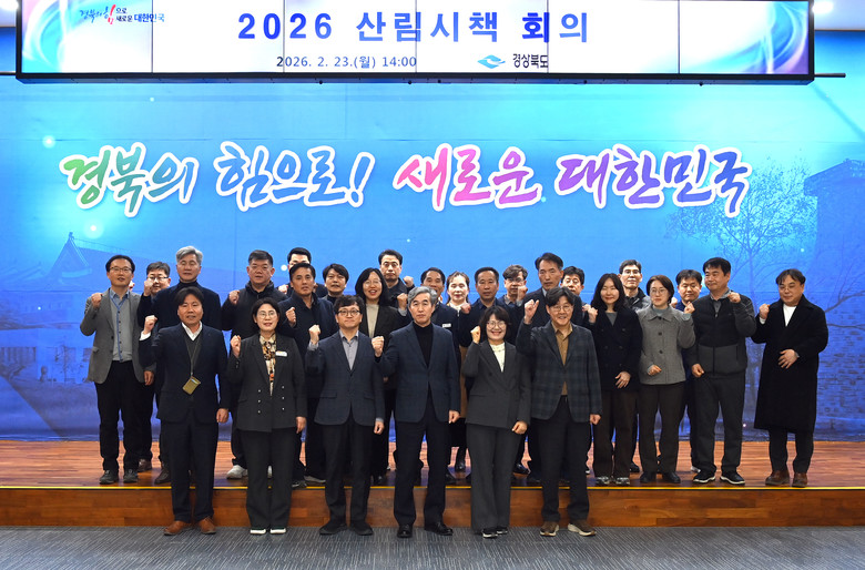 [경북 세계타임즈=한윤석 기자] 경상북도는 2026. 2. 23. 도청 화백당에서 22개 시‧군 산림부서장 등 100여 명이 참석한 가운데 ‘2026 산림 시책 회의’를 개최했다.