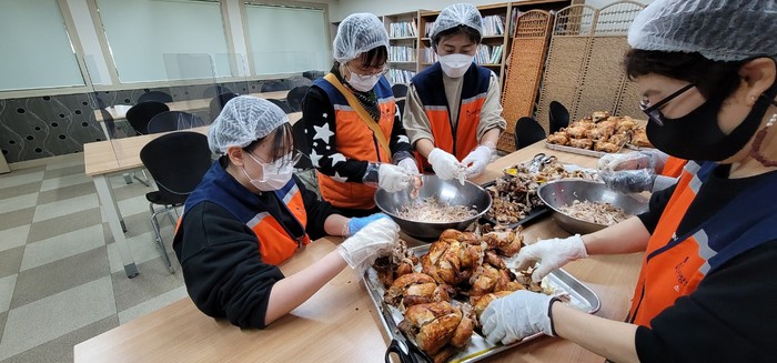이날 봉사에는 신상일 단장을 비롯한 자원봉사자 7명이 오후1시부터 현장에서 바비큐 통닭을 준비하여 중증장애인들에게 전달을 하였다.