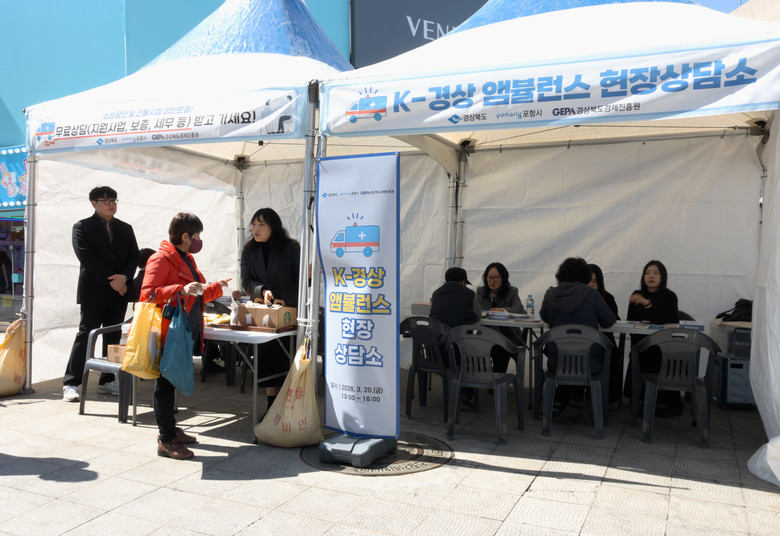 특히, 도는 포항 중앙상가 우체국 사거리에 ‘K-경상(敬商) 구급차(앰뷸런스)’라는 현장상담소를 설치하고 경제진흥원, 신용보증재단, 소상공인시장진흥공단 등의 전문가들을 배치해 금융, 보증, 창업, 세무 등의 상담(컨설팅)을 받을 수 있도록 지원했다.