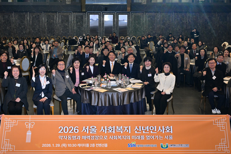 서울특별시사회복지협의회(회장 김현훈)와 서울특별시사회복지사협회(회장 심정원)가 공동 주최한 이번 신년인사회는 2026년 새해를 맞아 서울 사회복지계 주요 인사들의 교류와 화합을 다지고, 사회복지 발전을 다짐하기 위해 마련됐다. 이날 행사에는 오세훈 서울시장, 최호정 서울시의회 의장, 박정숙 서울시여성가족재단 대표, 진수희 서울시복지재단 대표를 비롯한 사회복지법인·시설 대표 등 약 200여 명이 참석했으며, 서울 사회복지 영상 상영 및 신년 인사 등의 순서로 진행됐다.