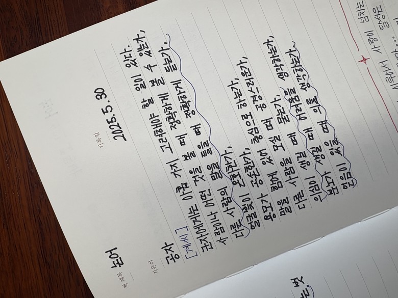 매일 아침 학생과 교사가 함께하는 고전 필사는 마음을 가라앉히고 생각을 가꾸는 교육적 시간으로서, 인문학적 기반 위에서 마음 교육과 인성 교육을 실천하며 학생들의 인성과 감성이 함께 성장하는 학교 문화를 만들어가고 있다.