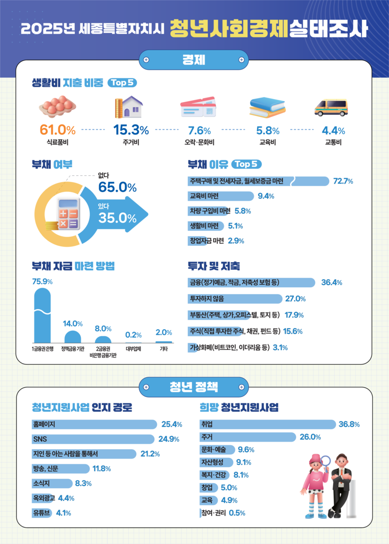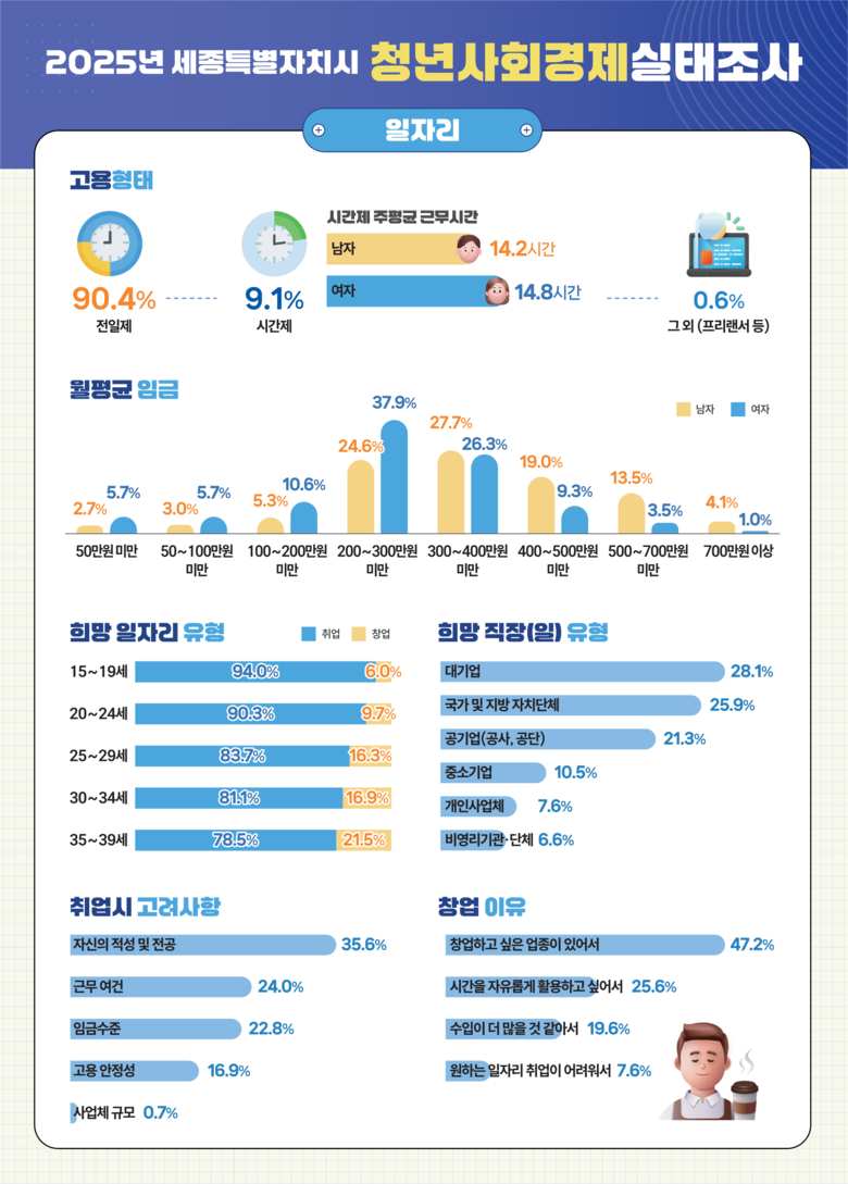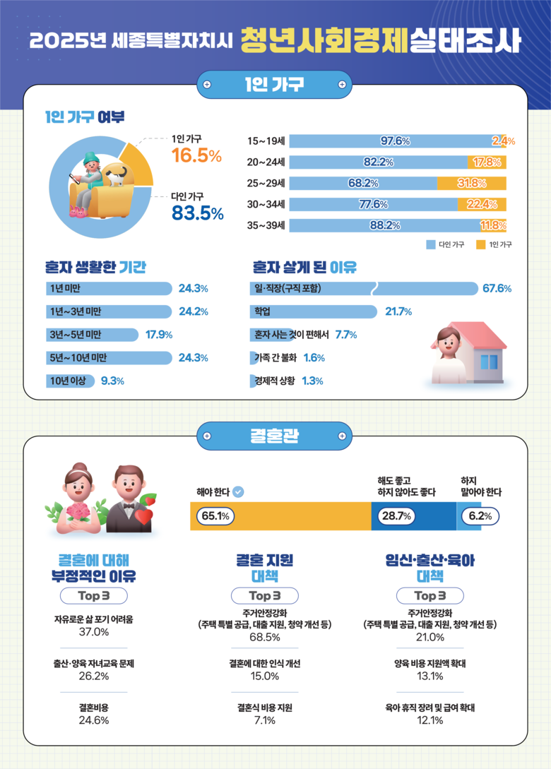 이번 2025년 세종시 청년사회경제실태조사와 관련된 자세한 내용은 세종통계포털(www.sejong.go.kr/stat) 내 ‘통계간행물-청년사회경제실태조사’ 게시판에서 확인할 수 있다.