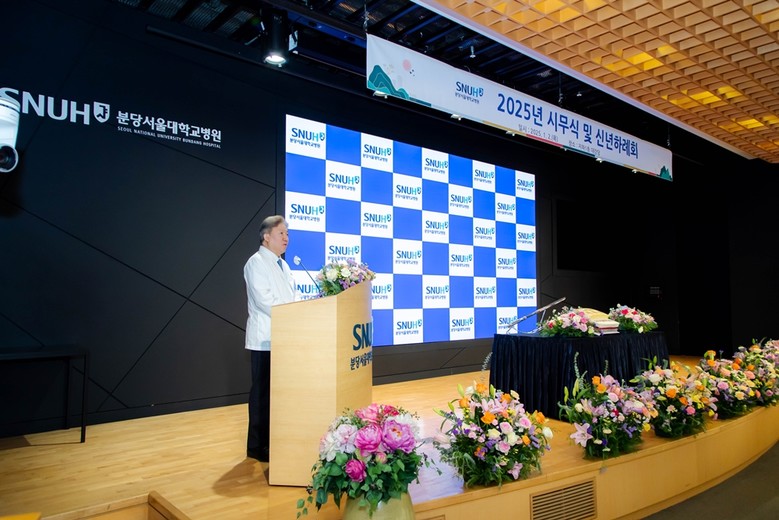 | ▲송정한 분당서울대병원장이 2025년 시무식에서 신년사를 하고 있다.(사진=분당서울대병원) |
