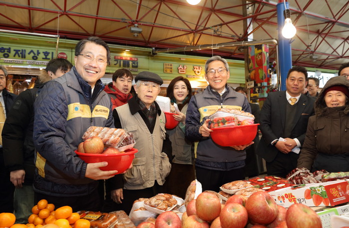이어 윤종규 KB국민은행장도 “추운 날씨지만 전국 곳곳의 전통시장에서 하나된 마음으로 나눔행사가 진행되고 있다”며, “상인분들에게 격려가 되고 어려운 이웃들에게는 따뜻한 마음이 전달 돼 따뜻하고 정이 넘치는 설 명절이 되길 기대한다”고 말했다.