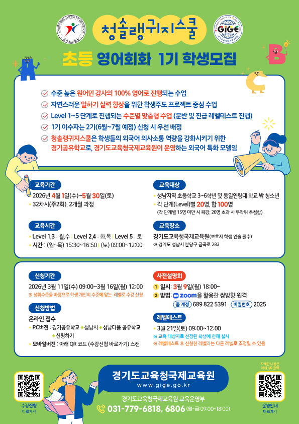 또한 성남 지역 초·중등 학생을 대상으로 하는 ‘말하기 중심 단계별 영어회화 프로그램’은 실용 영어 중심 교육과정을 통해 학생들이 자신있게 외국어로 소통할 수 있는 역량을 기를 수 있도록 지원한다.