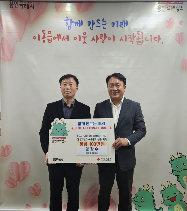 15일에는 임창수 이동읍 체육회장과 이은우 용인애향회 이사장, 안용석 용인애향회 이동지부장이 각각 100만원씩을 기탁했고, 16일에는 이동읍에 자리 잡은 ㈜대진산업이 100만원을 기탁했다.