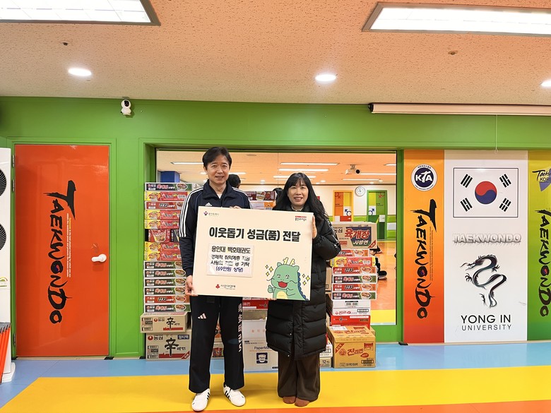 22일 수지구 성복동에 있는 용인대 백호태권도장이 라면 851개와 햇반 48개를 기탁했다. 이웃돕기 성품은 태권도장 원생들의 승급 심사비를 통해 모았으며, 용인대 백호태권도장은 2016년부터 매년 두차례씩 나눔을 실천하고 있다.