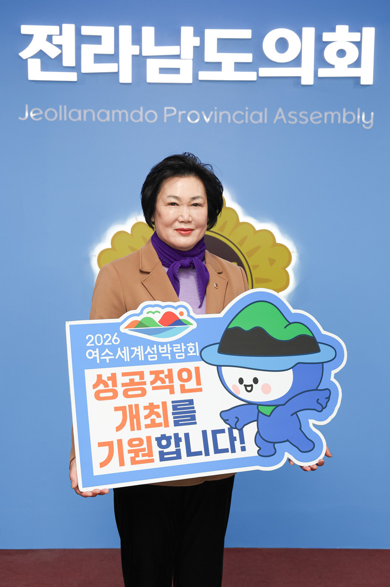 [전남 세계타임즈=우덕현 기자] 전라남도의회 최미숙 의원(더불어민주당, 신안2)이 3월 20일 ‘2026 여수세계섬박람회’의 성공적인 개최를 기원하는 릴레이 캠페인에 동참했다.