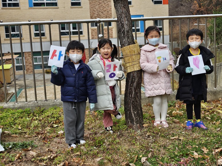 [시흥시 세계타임즈=송민수 기자] 시흥 산현유치원(원장 김애경)은 11월 27일(목), 유아들과 함께 유치원 바깥놀이터 나무 주변에서 ‘나무들의 겨울나기’ 프로젝트를 실시하였다. 산현유치원은 지속가능한 미래를 위해 환경교육주간을 운영하였고, 지역사회인 목감동 마을공동체와 연계한 생태환경교육을 실시하여 이미 생태 환경에 관심이 높아져 있으며, 나무에 옷을 입히는 ‘식물들의 겨울나기’활동을 통해 자연과 교감하며 생태 공감도를 더욱 높이고 실천하기 위해 기획되었다.