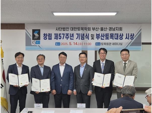 수상자는 각 분야의 토목 건설기술 발전에 이바지한 산·학·관 관계자로, 대한토목학회 부산·울산·경남지회 57주년 창립기념일인 어제(14일) 오전 11시 대한토목학회에서 열린 시상식에서 수상자 4명에게 표창장이 수여됐다.