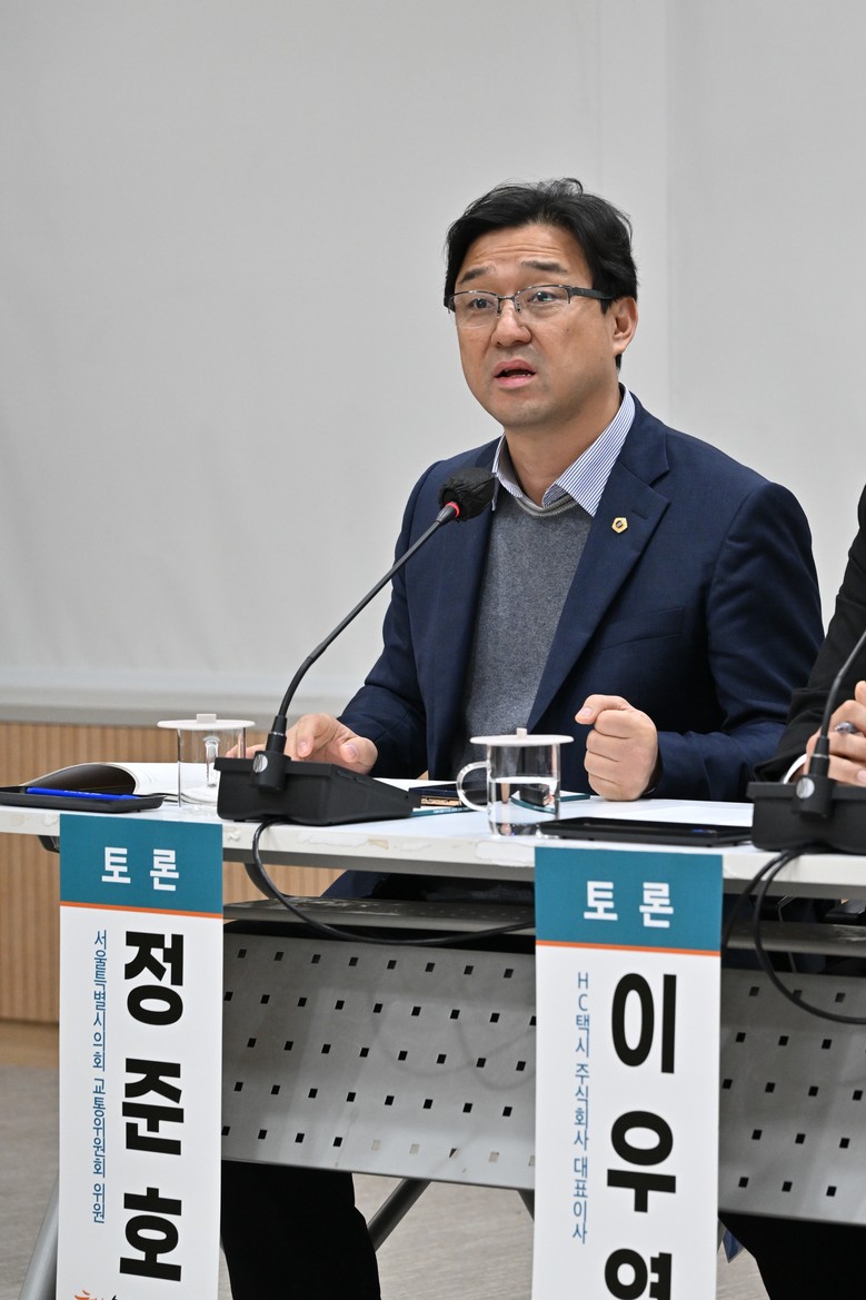 [서울 세계타임즈=이장성 기자] 서울특별시의회 정준호 의원(더불어민주당, 은평4)이 12월 17일 개최된 「자율주행 택시 시대 도래에 따른 서울택시 공존방안 모색 토론회」에 토론자로 참석해 자율주행 기술 확산이 피할 수 없는 흐름인 만큼 기존 택시 산업과의 공존을 전제로 한 행정·제도적 뒷받침 마련이 시급함을 강조했다.