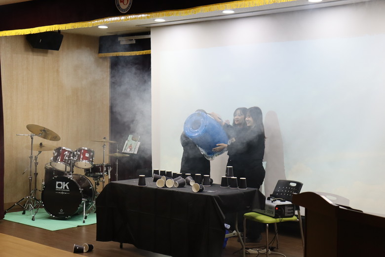 과학매직쇼에서는 ‘세균맨 퇴치작전’, ‘엘리멘탈 친구들의 하루’ 등 6가지 실험 마술 공연을 펼쳐 교과서 속 화학 반응을 눈앞에서 생생하게 확인하는 시간을 가졌다.