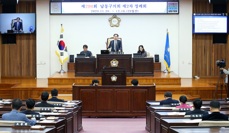 남동구의회는 오는 8일부터 14일까지 상임위원회별로 2024년도 예산안 및 기금운용계획안 등을 심사하고 15일 예산결산특별위원회 종합심사를 거쳐 18일 제3차 본회의에 최종 상정될 예정이며, 제3차 본회의를 끝으로 제290회 제2차 정례회의 모든 일정이 마무리될 예정이다