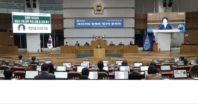 [세계타임즈 백진욱 기자] 지난 15일 경기도의회 안전행정위원회 이서영 의원(국민의힘, 비례)은 제369회 정례회 제3차 본회의에서 5분자유발언을 통해 김동연 경기도지사가 후보 시절 밝힌 “성남시 3대 공약”의 추진 상황을 공개할 것을 촉구하면서 신도시 특별법에 성남시의 고도제한 규제완화를 포함시키기 위한 구체적 노력이 보이지 않는다고 지적했다.